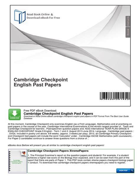 Best Cambridge Year 6 Checkpoint Past Paper 2013 PDF Read Online EBook Sites No Sign Up - As we know, Read Online EBook is a great way to spend leisure time. Almost every month, there are new Ebook being released and there are numerous brand new Ebook as well.